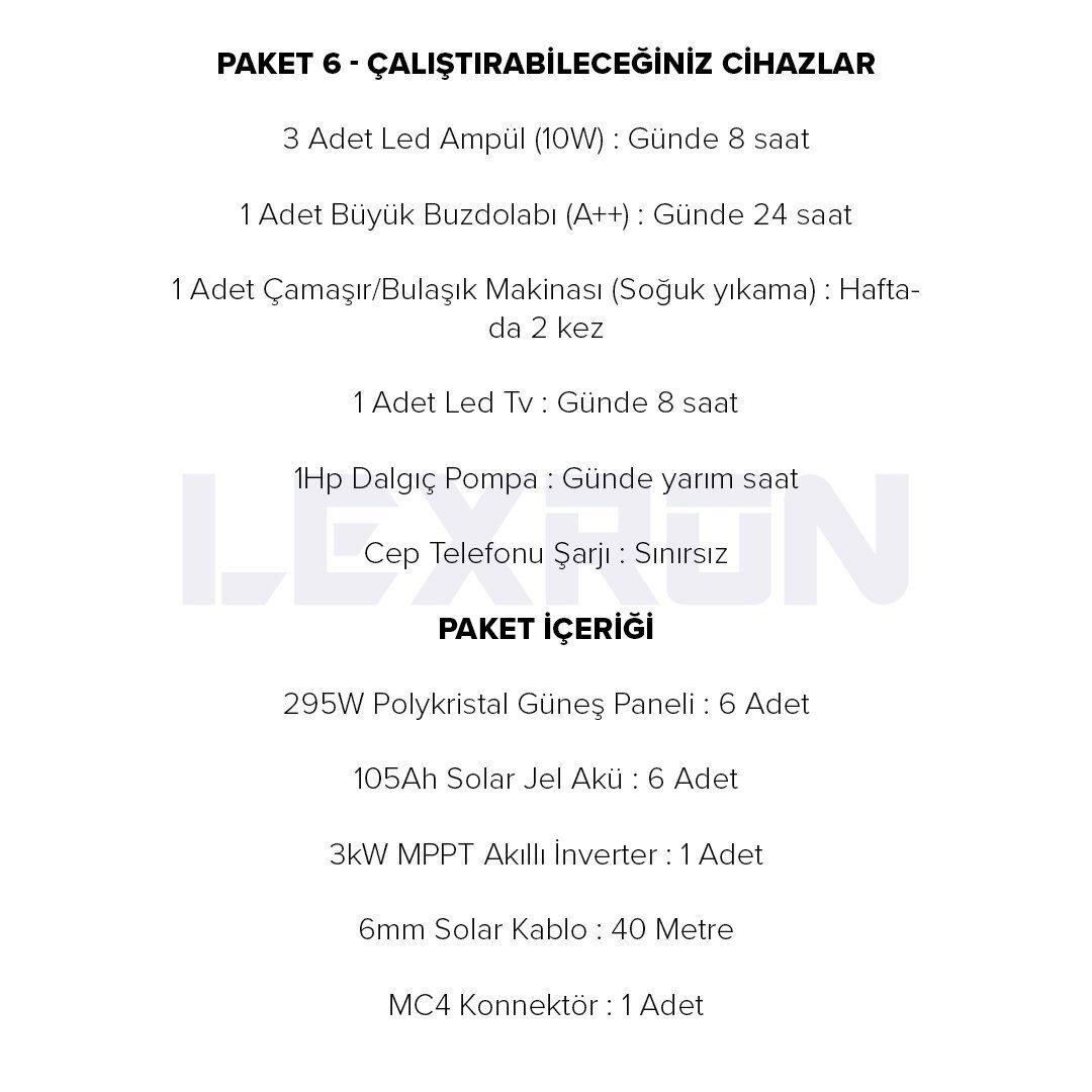 | 105 Ah Solar Jel Akü | : | 6 adet |