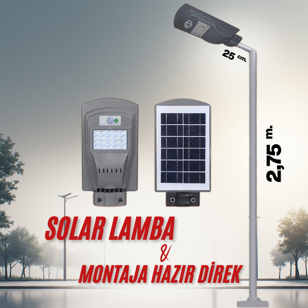 60W SOLAR BAHÇE AYDINLATMA LAMBASI + 3M. LAMBA DİREĞİ